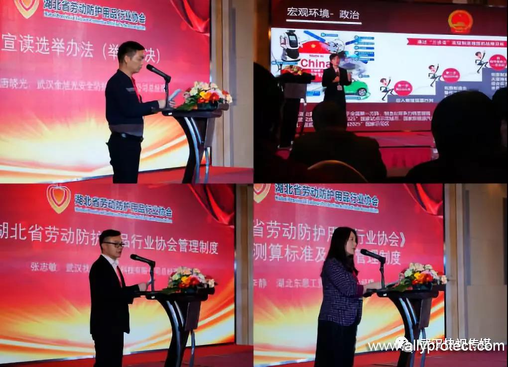 2019年3月9日,湖北省勞動(dòng)防護(hù)用品行業(yè)協(xié)會(huì)正式成立,協(xié)會(huì)第一屆第一次會(huì)員大會(huì)在武漢光明萬(wàn)麗大酒店召開。湖北省民政廳社會(huì)組織管理局副局長(zhǎng)姜健,湖北省工商聯(lián)會(huì)員部部長(zhǎng)江勇,國(guó)家勞動(dòng)保護(hù)用品質(zhì)量監(jiān)督檢驗(yàn)中心武漢站主任劉宏斌、教授程鈞,中國(guó)紡織品商業(yè)協(xié)會(huì)安全健康防護(hù)用品委員會(huì)秘書長(zhǎng)高飛,浙江省安全健康防護(hù)用品行業(yè)協(xié)會(huì)秘書長(zhǎng)王良基,中國(guó)鐵路武漢局集團(tuán)有限公司物資供應(yīng)段主任趙恒,卓爾集團(tuán)商管處,湖北省企業(yè)國(guó)際合作協(xié)會(huì)等領(lǐng)導(dǎo)及嘉賓出席大會(huì),并致以祝賀。
